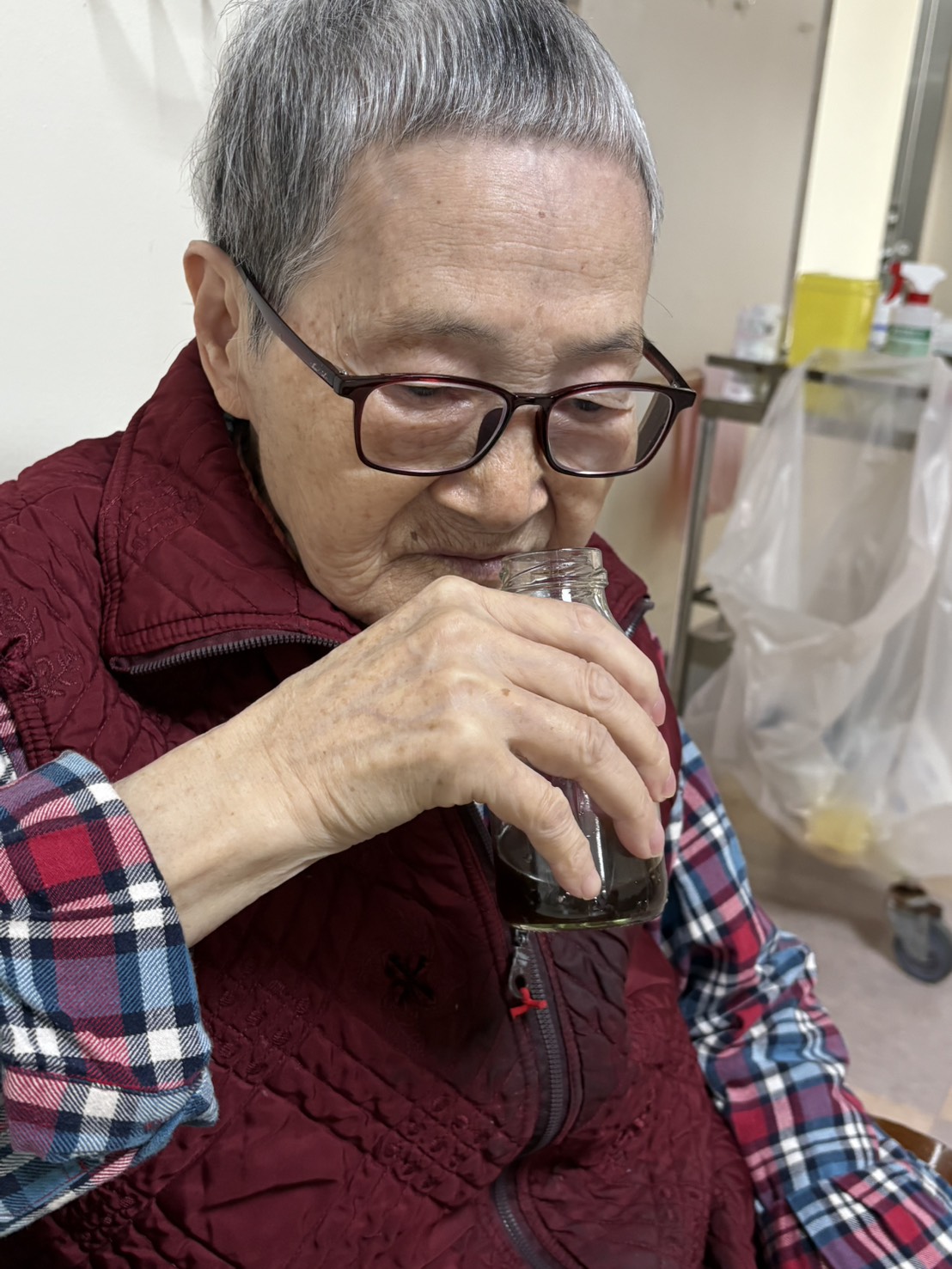 長輩們一聞到立刻精神都來了,有人說「好熟的味道~」、有人皺著眉笑說「這不是菜啦!」現場笑聲不斷