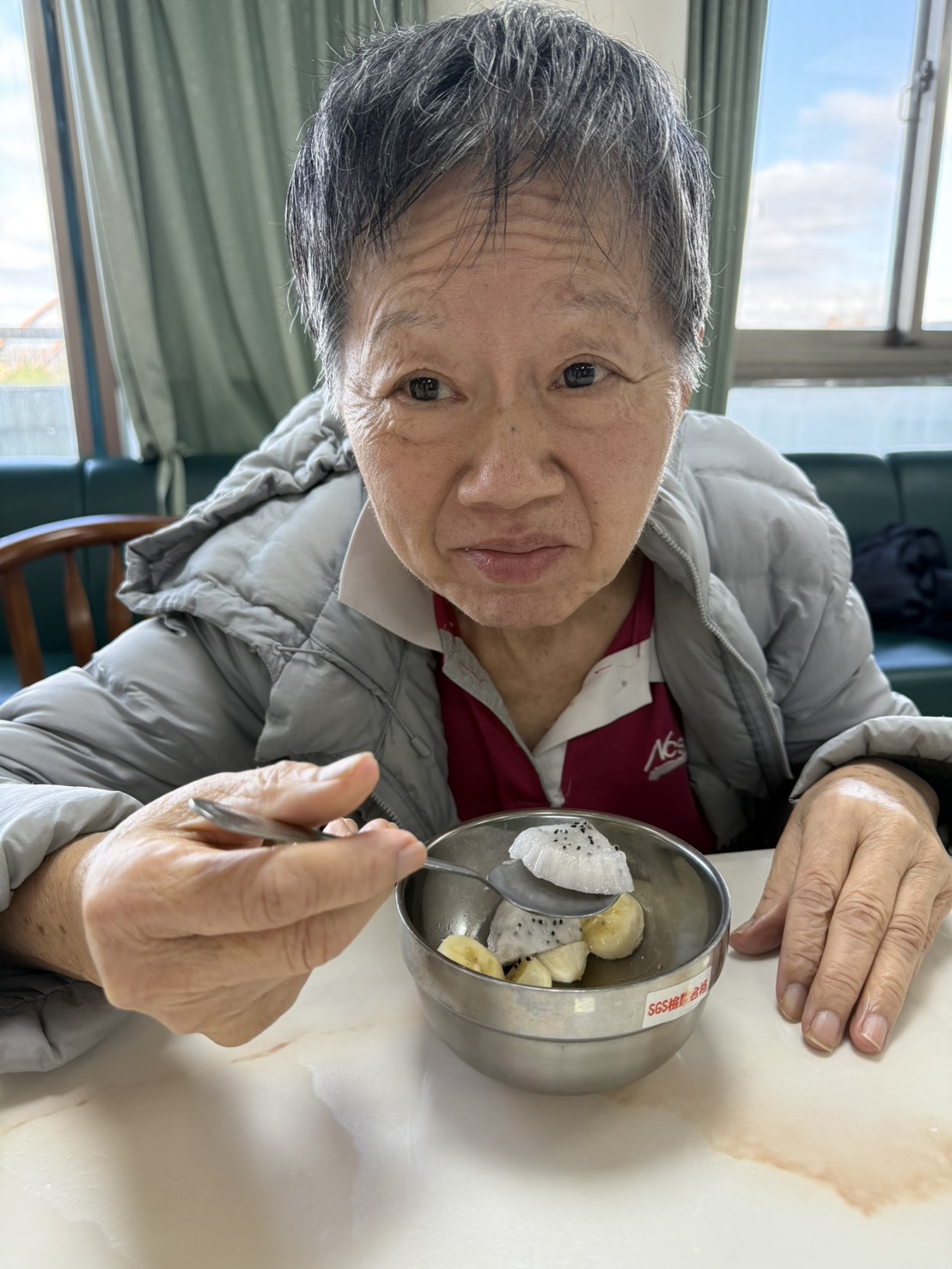 長輩們邊吃邊聊天,氣氛輕鬆愉快,